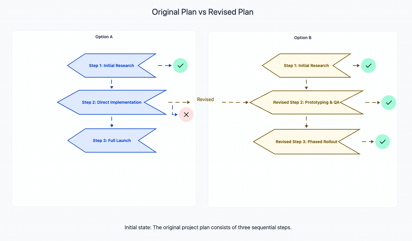 This creates a feedback loop. Step 1 completes and reveals new information. The plan is re-evaluated. If the new information does not affect the plan, execution continues unchanged. If it does, the remaining steps are revised. The plan evolves with the task.