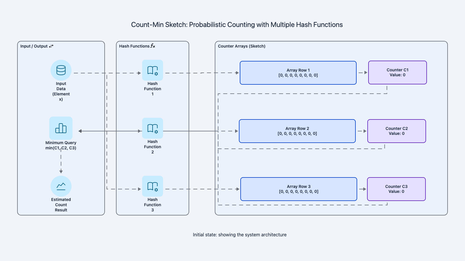 Two probabilistic data structures dominate large-scale counting: HyperLogLog for cardinality estimation ("how many unique items?") and Count-Min Sketch for frequency estimation ("how often does each item appear?"). Understanding their internals reveals why they work and when they fail.