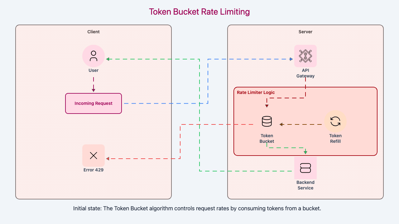 Everything discussed so far (idempotency, timeouts, retries, backoff) happens on the client side. Rate limiting is the server's defense. While backoff is a polite request for clients to slow down, rate limiting is the server enforcing that slowdown whether the client cooperates or not. Without rate limits, a single misbehaving client, a bot, a buggy retry loop, or a DDoS attack can consume all available capacity and starve every other user.