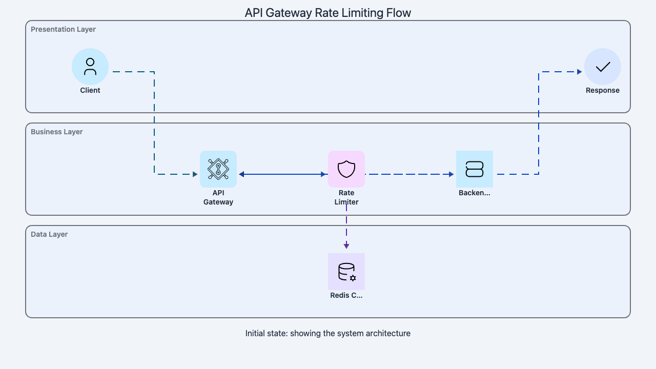 - Cascading failures — Without rate limits, a traffic spike propagates from the API layer to the database, cache, and downstream services. Rate limiting at the edge prevents the spike from reaching fragile backends.